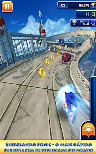 O mundo de Sonic, exuberantemente detalhado, ganha vida em celulares e tablets – um jogo de corrida sem fim nunca pareceu tão bom!