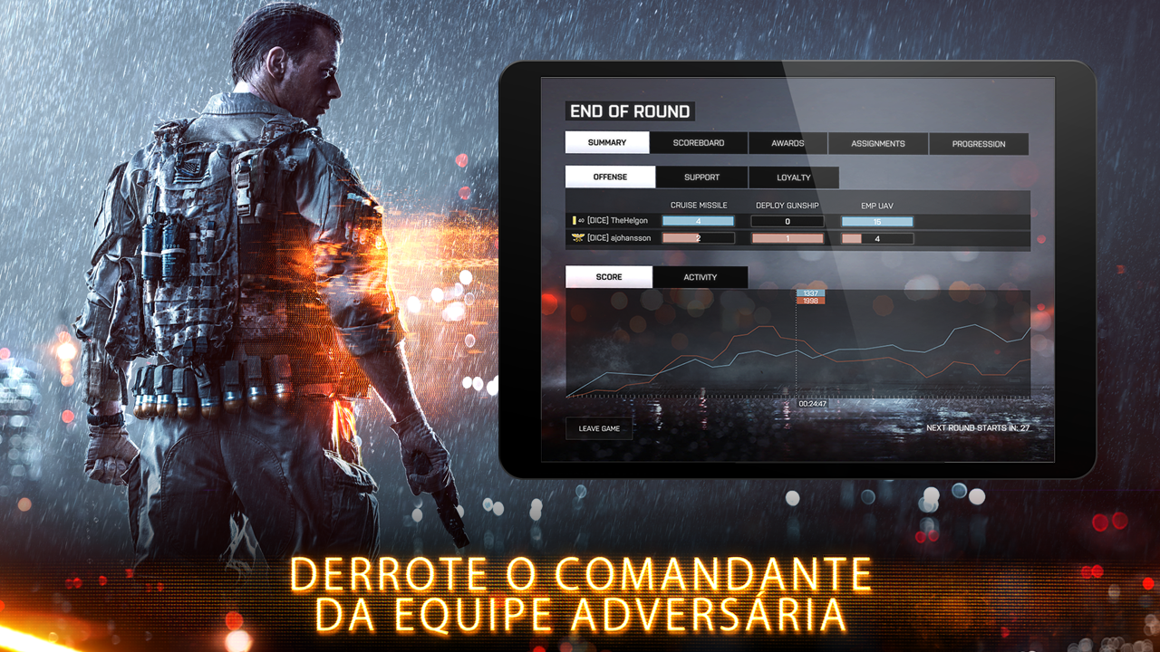 OBS.: este aplicativo requer que você tenha o Battlefield 4™ em pelo menos uma plataforma, além de um soldado ativo de patente 10 ou superior nessa mesma plataforma.