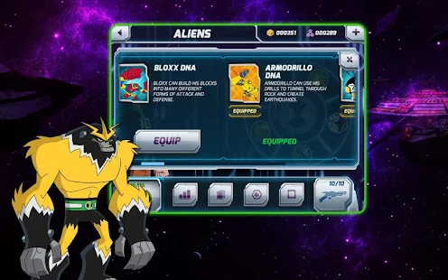 Obtenha reforços com Azimute, o brilhante inventor do Omnitrix. Adicione itens poderosos como pacotes de recuperação e vantagens de status. Junte modos de ataques que fazem Ben e Rook usarem novos movimentos devastadores.